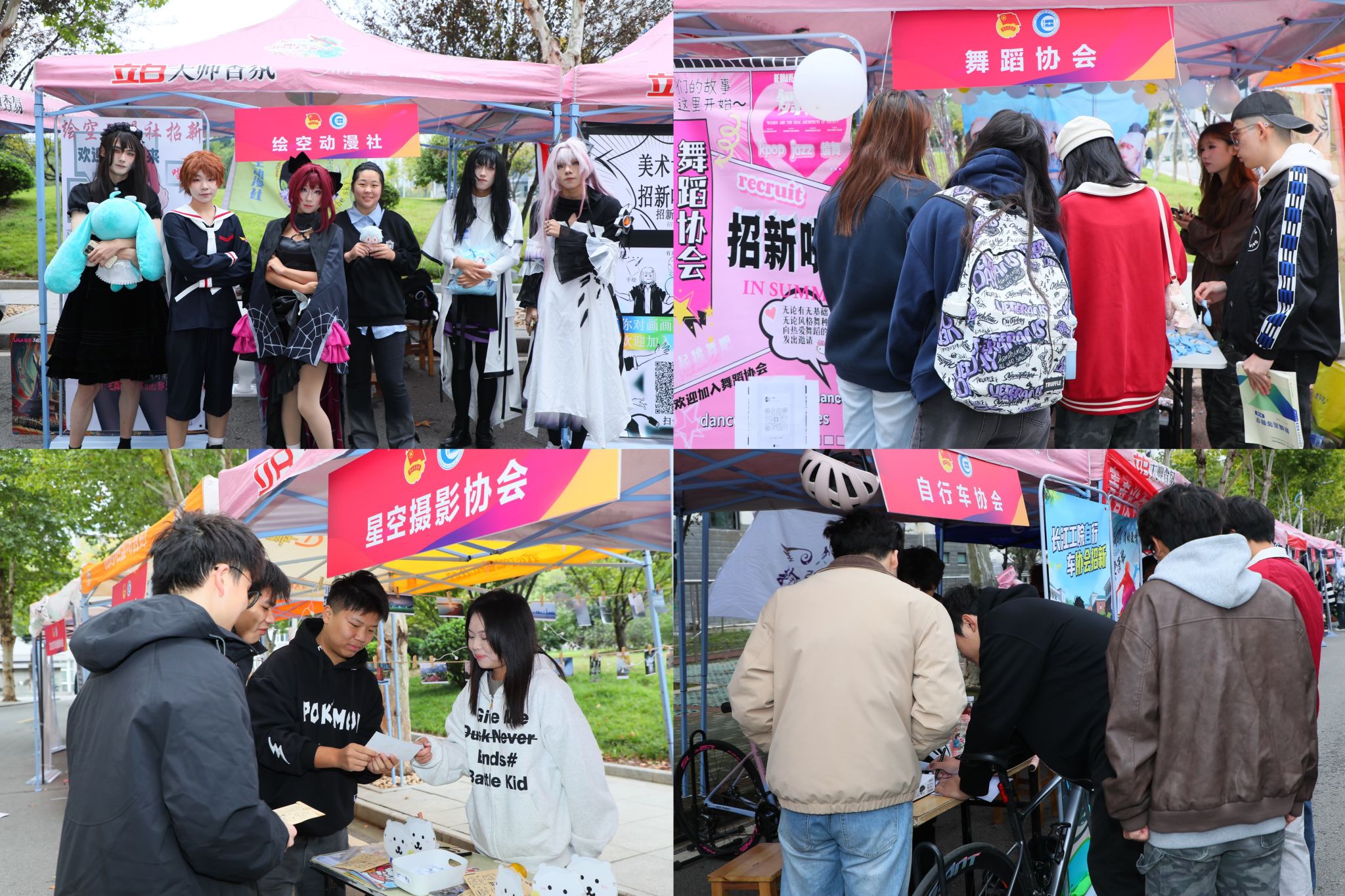 社团嘉年华环节同样精彩纷呈,成为师生释放活力的欢乐阵地。舞蹈协会的动感表演、子衿国风社的传统礼仪展示、绘空动漫社的cosplay巡游、博林读书社的诗词接龙等特色活动,全方位展现校园社团的多元文化魅力;套圈、石膏娃娃彩绘、趣味猜谜、团队闯关等游戏打卡区前,同学们三五成群踊跃参与,欢声笑语弥漫校园。大家通过集章打卡兑换志愿者文创礼品,在轻松氛围中加深对各社团的了解,更传递着互助友爱的青春正能量。