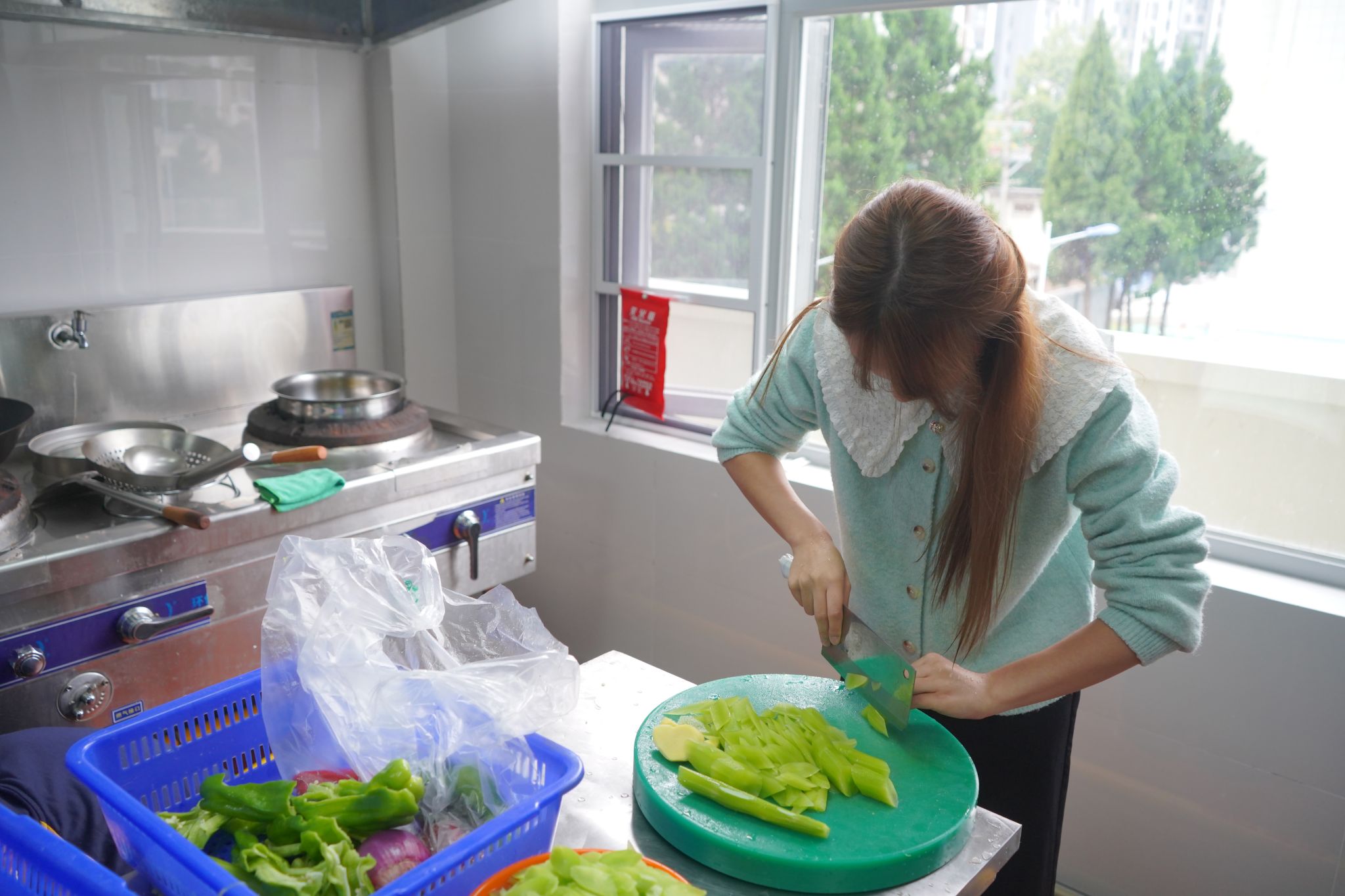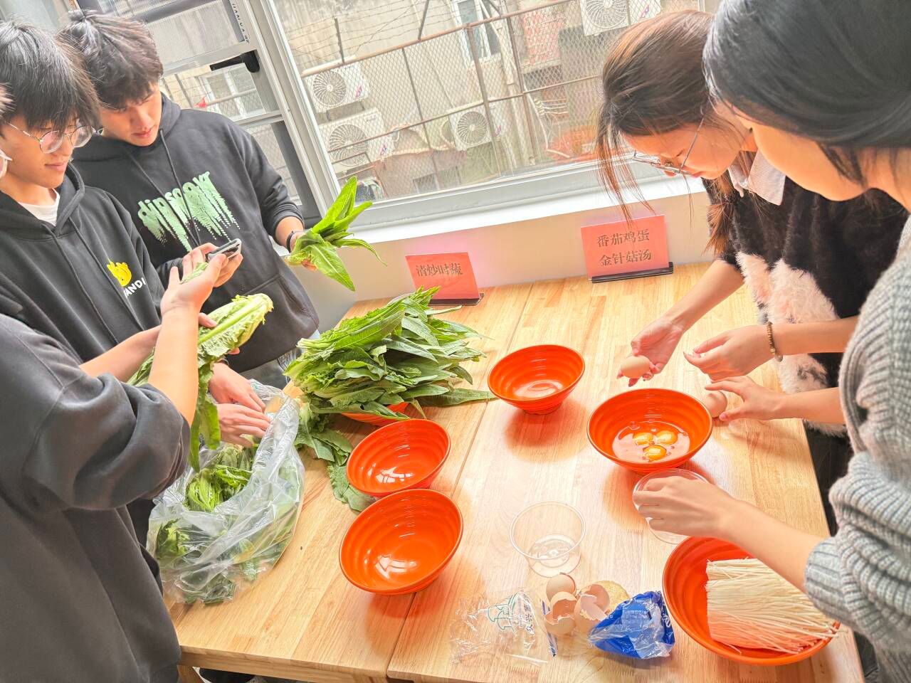 随后,同学们按照前期分组,领取各自小组的食材,在食堂师傅的演示下、在学校老师的指导下分工协作,从摘菜、清洗,到切丝切片,再到炒制、调料、装盘……在同学们的合作下,小炒莴苣、宫保鸡丁、酸辣土豆丝等数十道家常菜陆续上桌。每一道菜品都凝聚着同学们的匠心与汗水,不仅色香味形俱佳,更蕴含着对传统饮食文化的理解与传承。