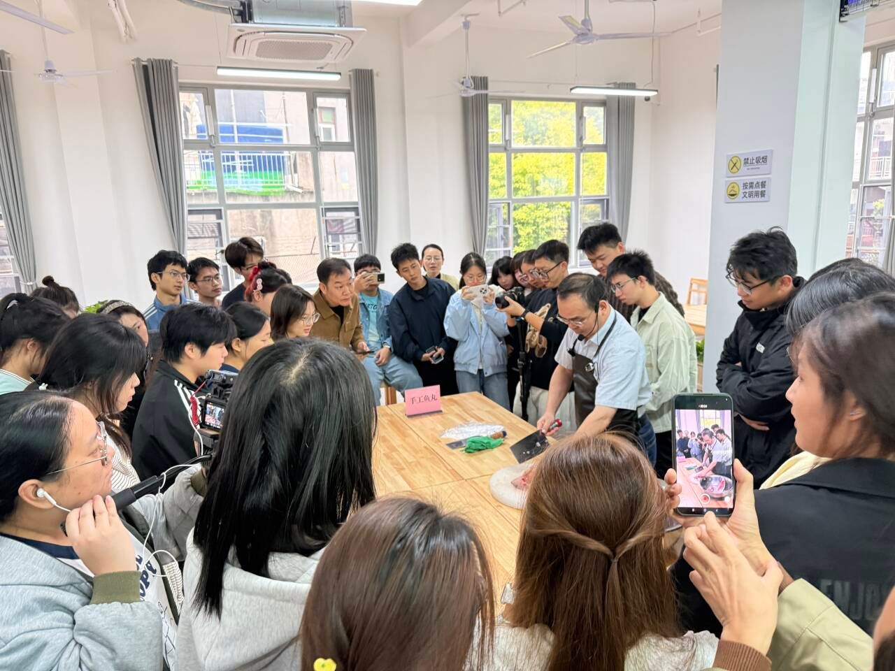 “长辈落座后再就座”“请长辈先动筷”……开餐前,党委学生工作部部长杨艳为参与师生进行就餐礼仪培训,讲解传统餐桌文化和商务接待礼仪。随后师生们围坐一桌,品尝着共同打造的美味佳肴,畅谈烹饪心得与学习感悟。