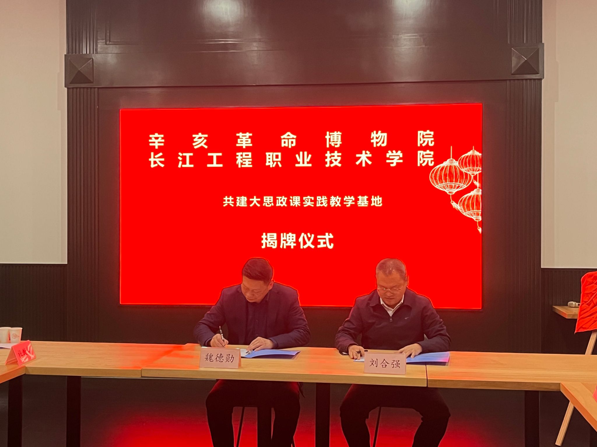签约仪式后,刘合强与魏德勋共同为两大基地揭牌。两块牌匾的顺利落成,不仅为全校师生搭建了一个高质量的校外实践平台——“大思政课”实践教学基地将助力学生在历史场景中深化对思政理论的理解,“辛亥薪火・研学实践教学基地”将为研学旅行管理与服务专业学生提供沉浸式的课程实践与项目开发机会;同时也为辛亥革命博物院拓展了教育服务功能,使其在服务青年成长、传播历史文化方面开辟了新路径。