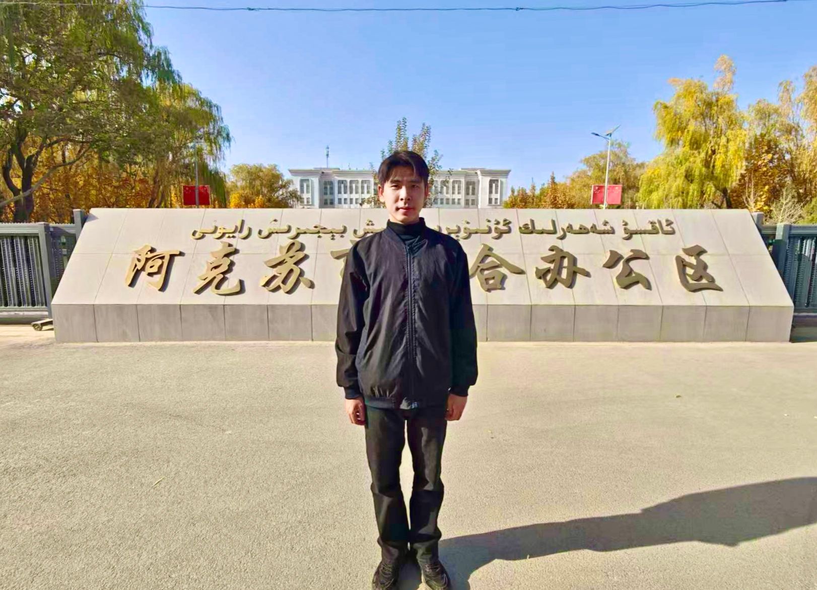 “刚下火车,就看到‘欢迎西部计划志愿者’的横幅,政府办公室的姐姐用带着当地口音的普通话跟我聊天,瞬间拉近了距离。”人工智能学院数媒2204班黄茜茜,如今是新疆阿克苏市人民政府办公室的一名联络员,主要协助整理民生政策资料、开展惠民宣传工作。初到阿克苏,澄澈的天空与热情的人们让他快速适应了新环境;走上岗位后,每一次为群众解答政策疑问、每一次参与惠民活动组织,都让他对“青春的意义”有了新的理解。“前几天协助发放‘助农补贴’,看到农户们领到补贴时的笑脸,我突然明白‘奉献’不是一句口号,而是用自己的微光,点亮别人的生活。”黄茜茜说,未来他会继续深耕民生服务,让青春在为群众办实事中更有分量。