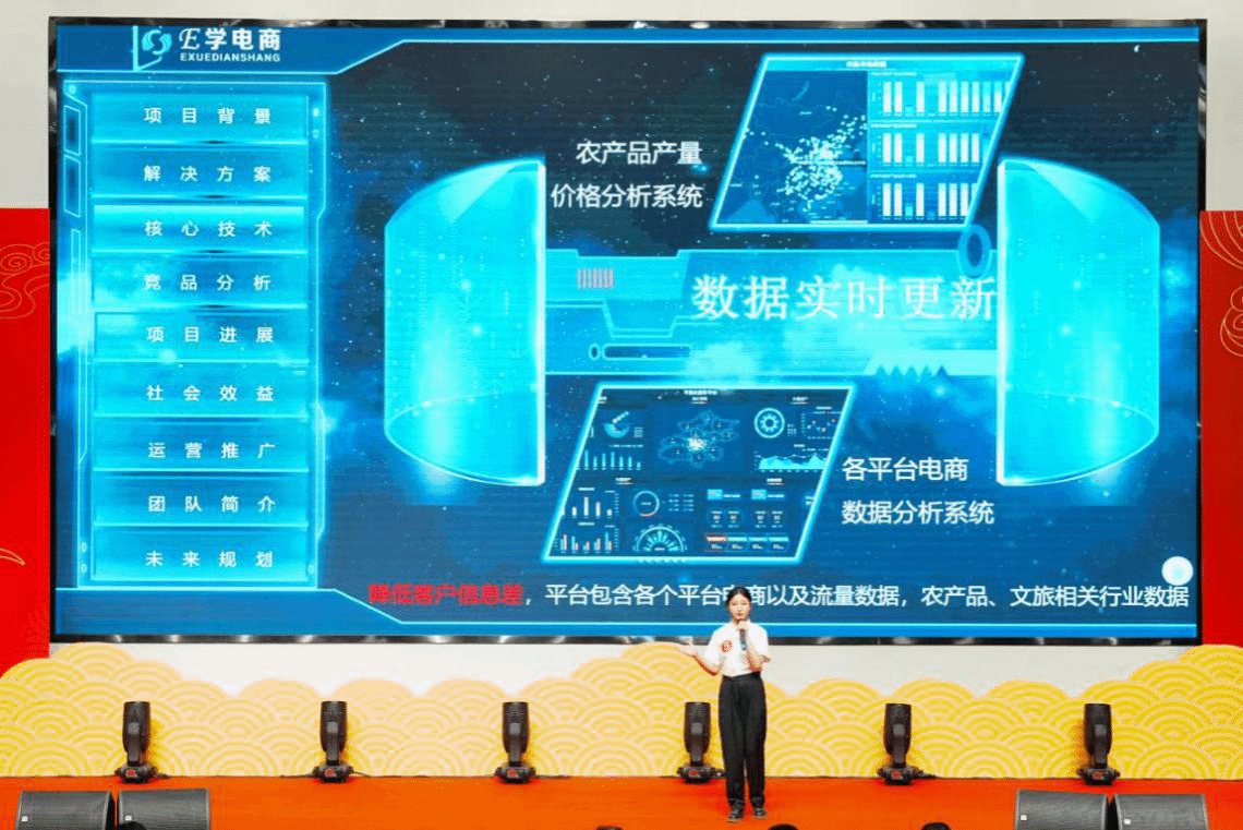 校赛共分为入围赛、现场赛、排位赛三个环节。经过此前入围赛的激烈角逐,共有17个项目进入到现场赛。采用“5+3”的模式进行,即:5分钟阐述项目+3分钟答辩。各参赛团队从教育、创新、团队、商业、社会价值等维度进行汇报。