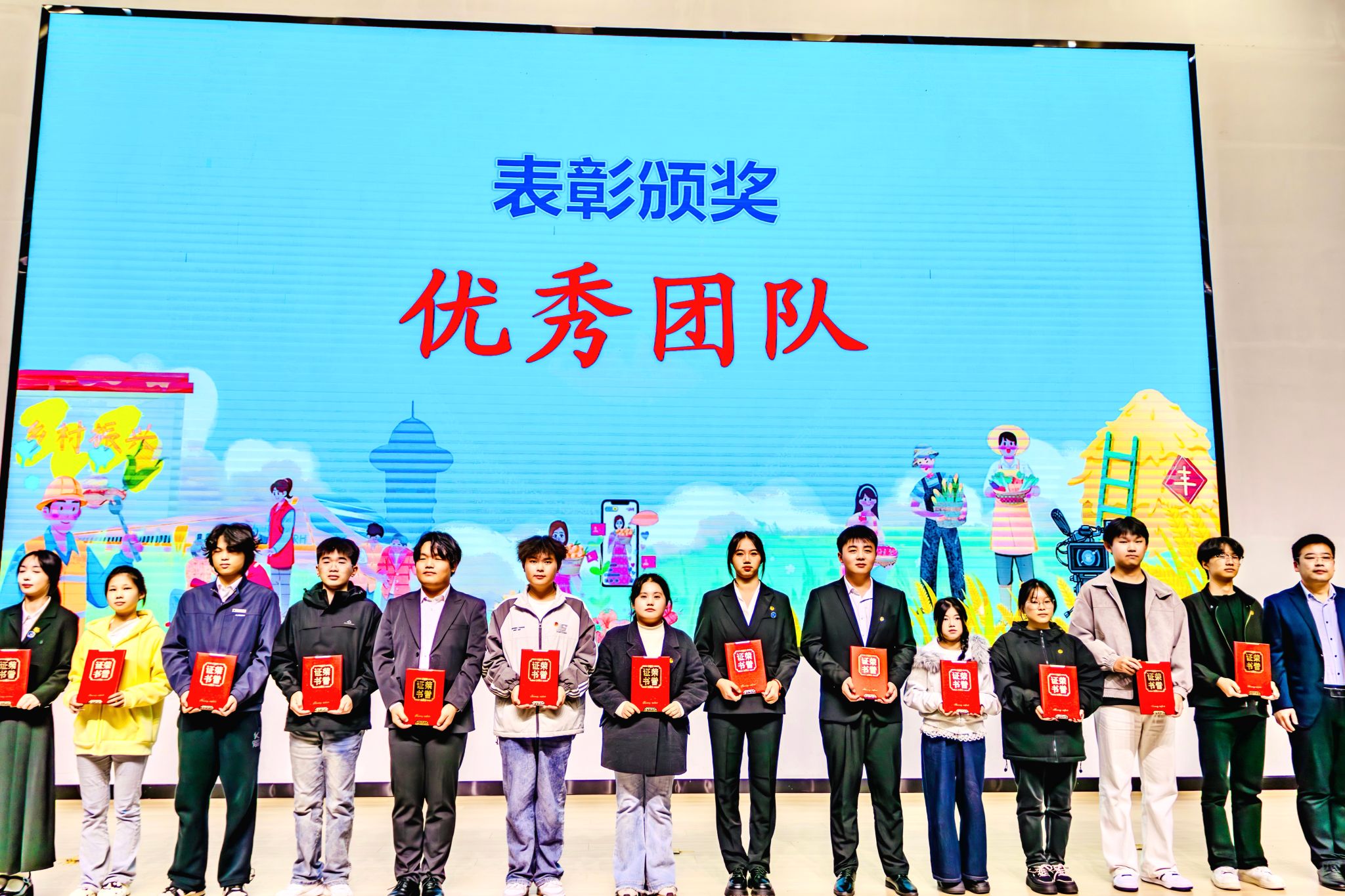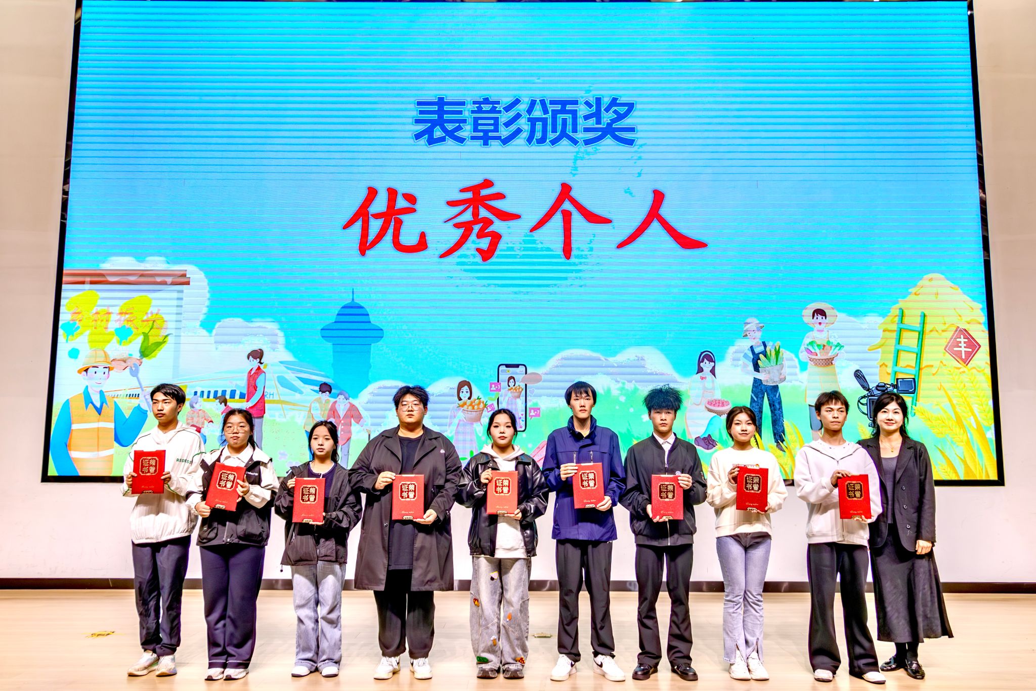 团队风采展示后,与会领导嘉宾为获奖单位及个人颁奖,表彰他们在暑期社会实践中作出的突出贡献。