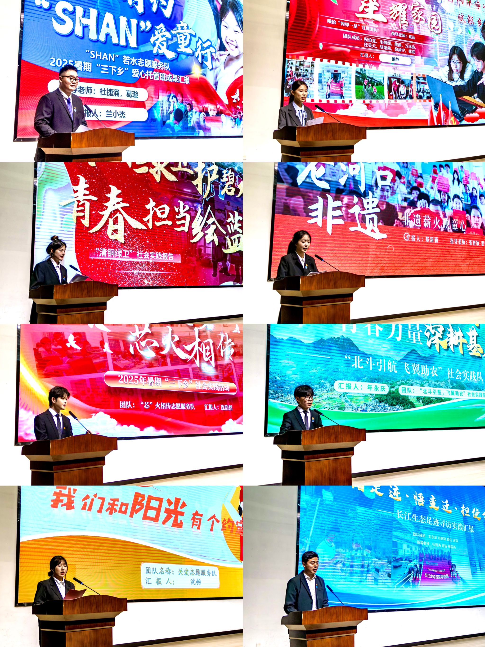 长江生态足迹寻访团等8支实践团队,围绕项目背景、准备情况、活动实施、项目意义等方面进行了现场汇报,将难忘的实践过程、丰硕的实践成果以及深刻的实践感悟一一呈现。
