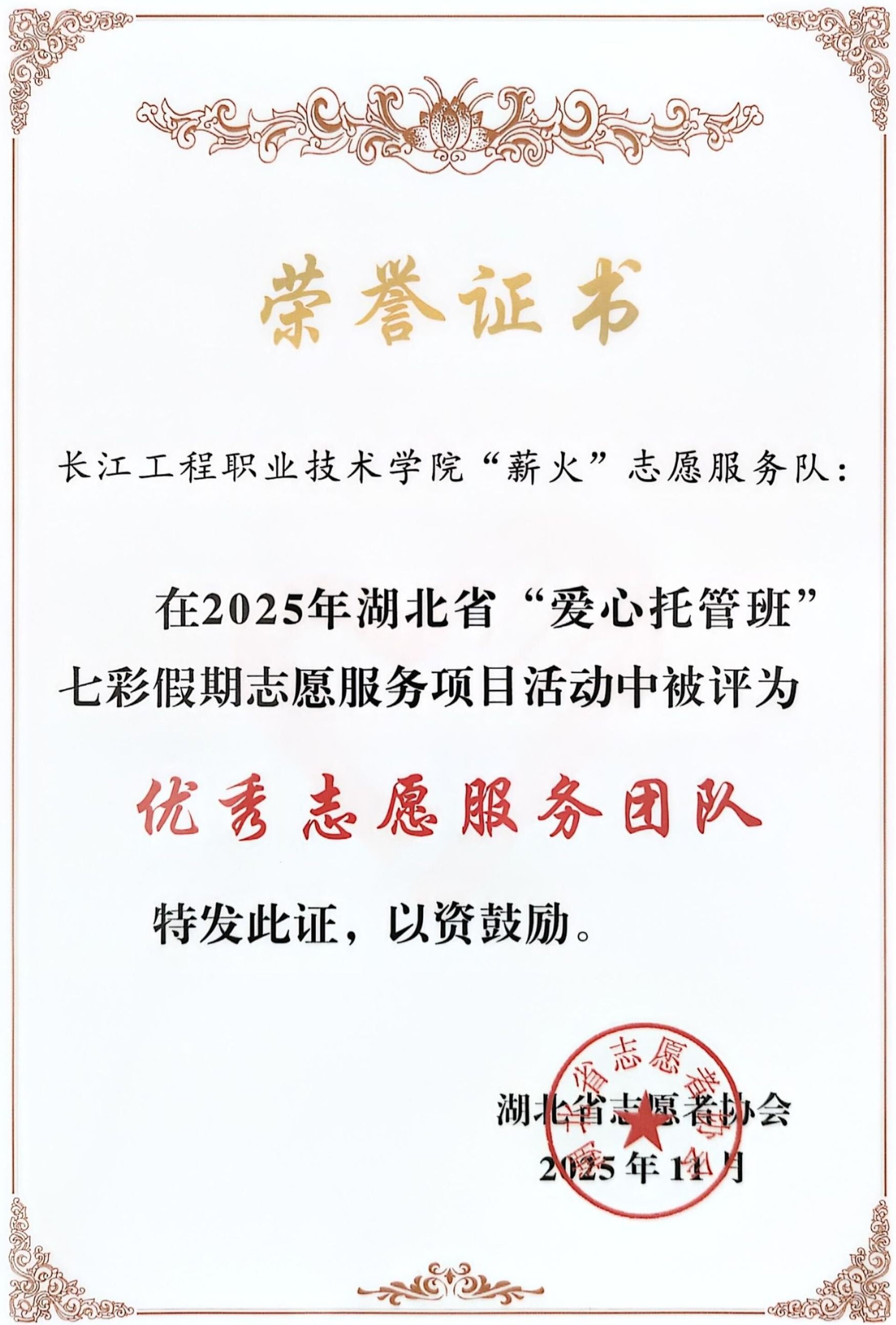 近日,湖北省青年志愿者协会公布2025年湖北省“爱心托管班”七彩假期志愿服务项目优秀团队名单,我校机电工程学院“薪火”志愿服务队获评“优秀志愿服务团队”荣誉称号...