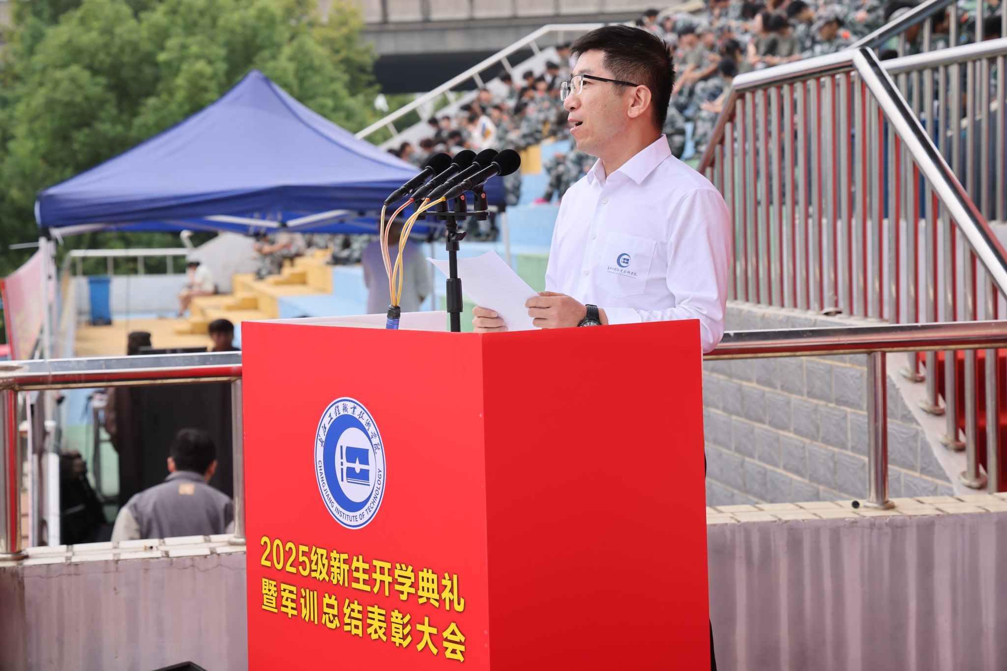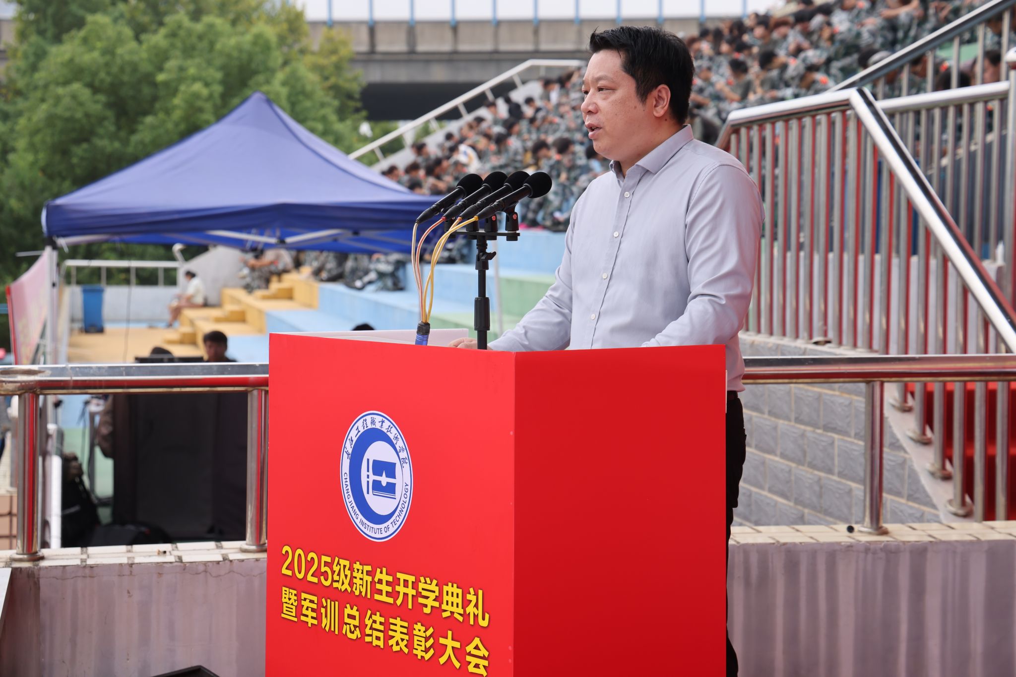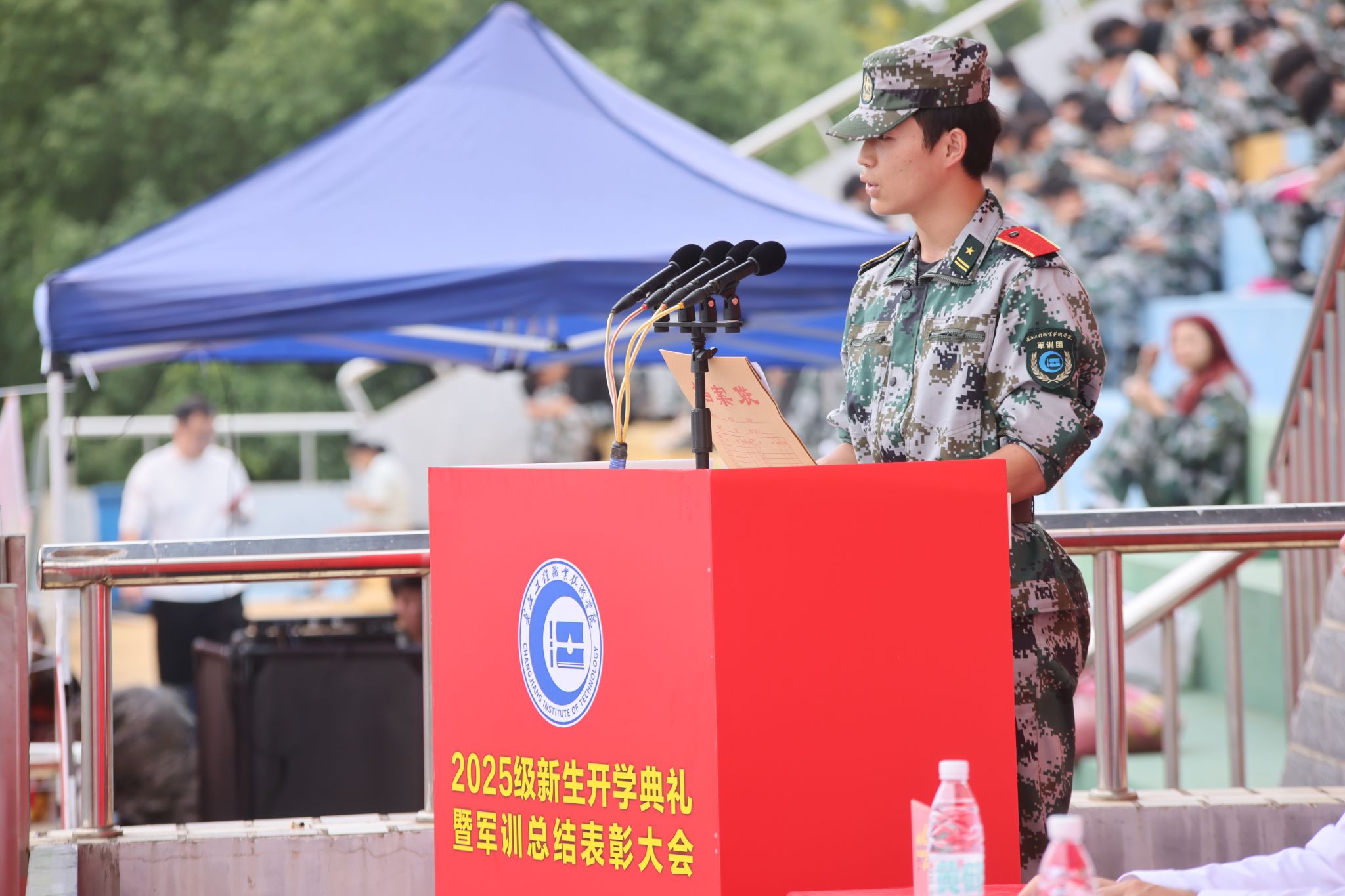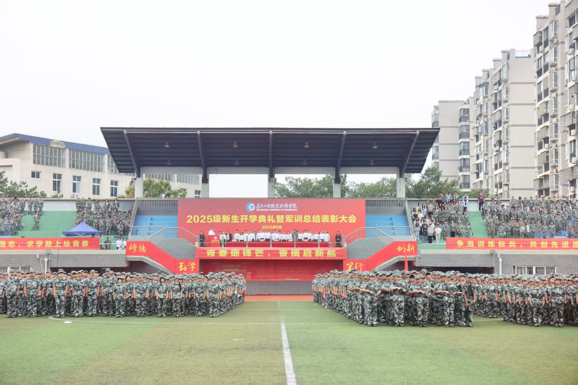 9月26日上午,弘毅运动场旌旗飘扬、青春涌动,2025级新生开学典礼暨军训总结表彰大会在此隆重举行。党委书记向家文,校长杨道远,武警湖北省总队武汉支队某大队副教导员杨挺,党委副书记陈欣,省纪委监委驻校纪检监察组组长、党委委员、纪委书记刘合强,党委委员、组织人事部部长李华农出席大会。承训部队全体官兵、合作企业代表、优秀校友代表、学校各院系及职能部门负责人、全体新生辅导员与2025级全体新生参加大会。