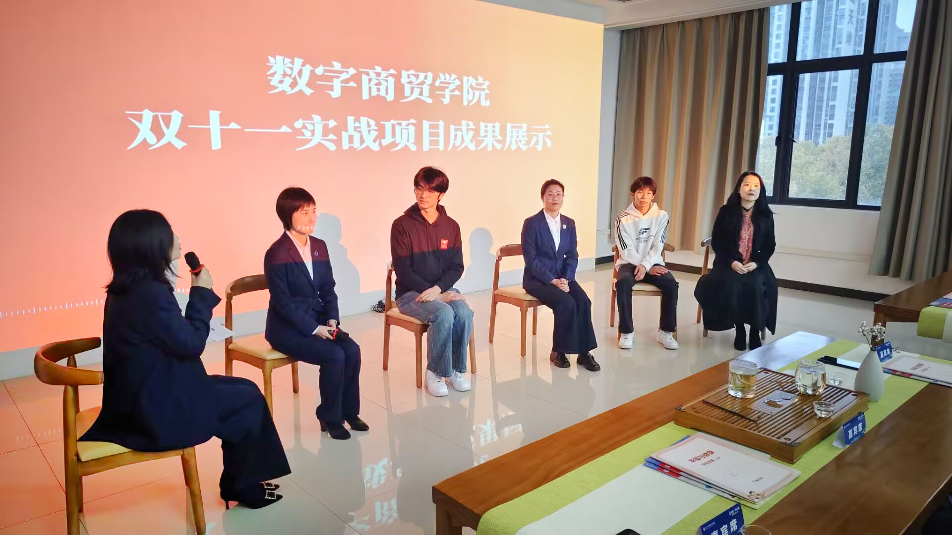 活动尾声,院长马超作专题汇报。他从“党建领航志愿服务”、“四真四化深耕服务”、“商贸赋能乡村振兴”三个维度,全面阐述学院近年来的发展成果与实践经验,清晰勾勒出“晒”育人答卷、“亮”职业本领、“燃”县域新引擎的特色发展路径。随后,副院长熊俐与项目师生代表围绕“产教融合”展开深度对话,通过现场访谈,生动还原了师生在唯品会物流、京东客服等生产性实训项目中的实践育人与创新突破。