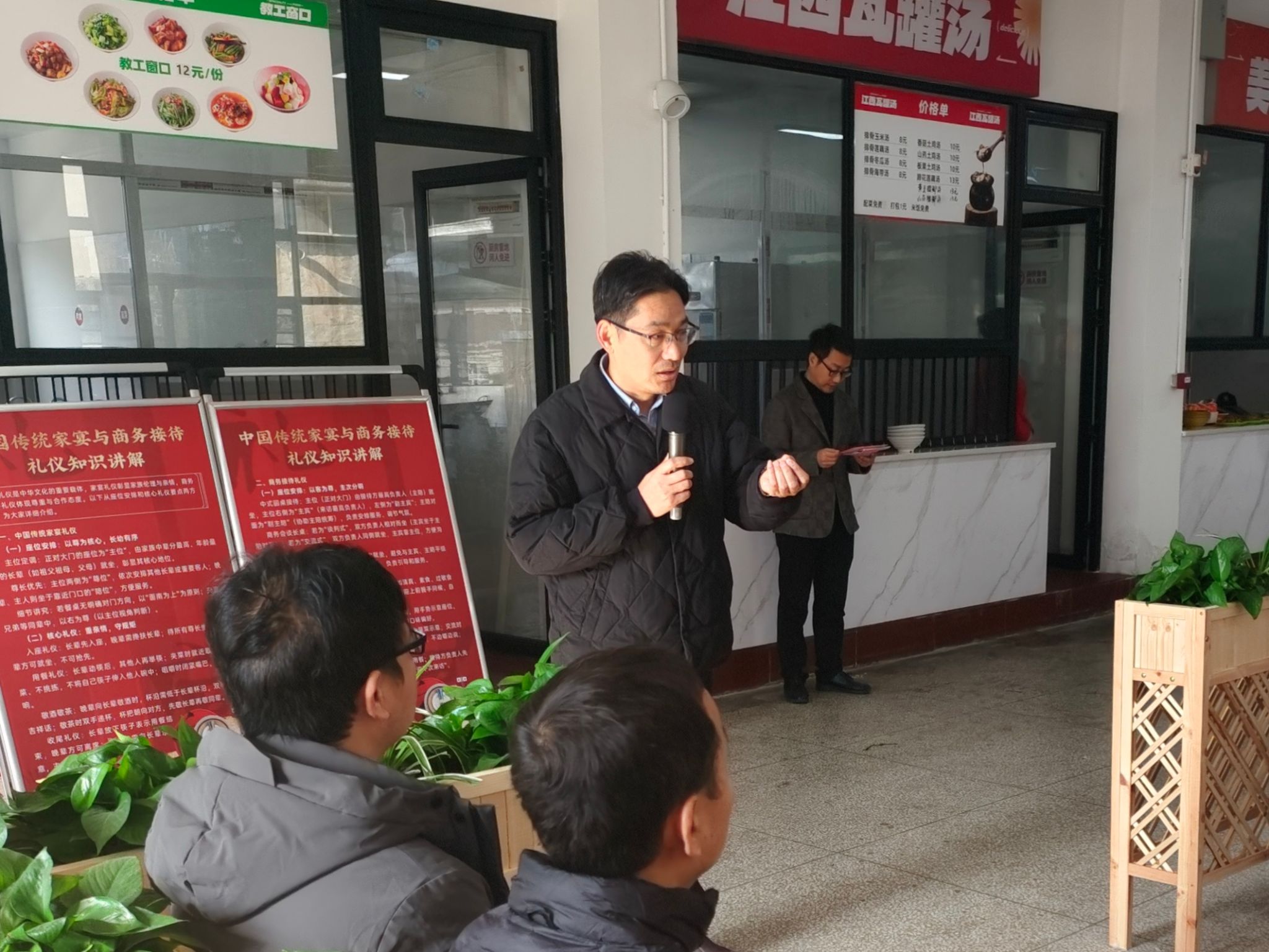 开餐前,苏杰围绕传统家宴礼仪与商务接待礼仪,为同学们讲解餐桌礼仪的核心原则与注意事项,涵盖入座顺序、餐具使用、敬酒规范等内容。随后师生围坐共同品尝劳动成果,共话校园生活与做菜心得,现场气氛温馨融洽。经过投票评比,豇豆炒肉等3道菜品凭借独特口味和精湛技艺荣获“最佳口味奖”。