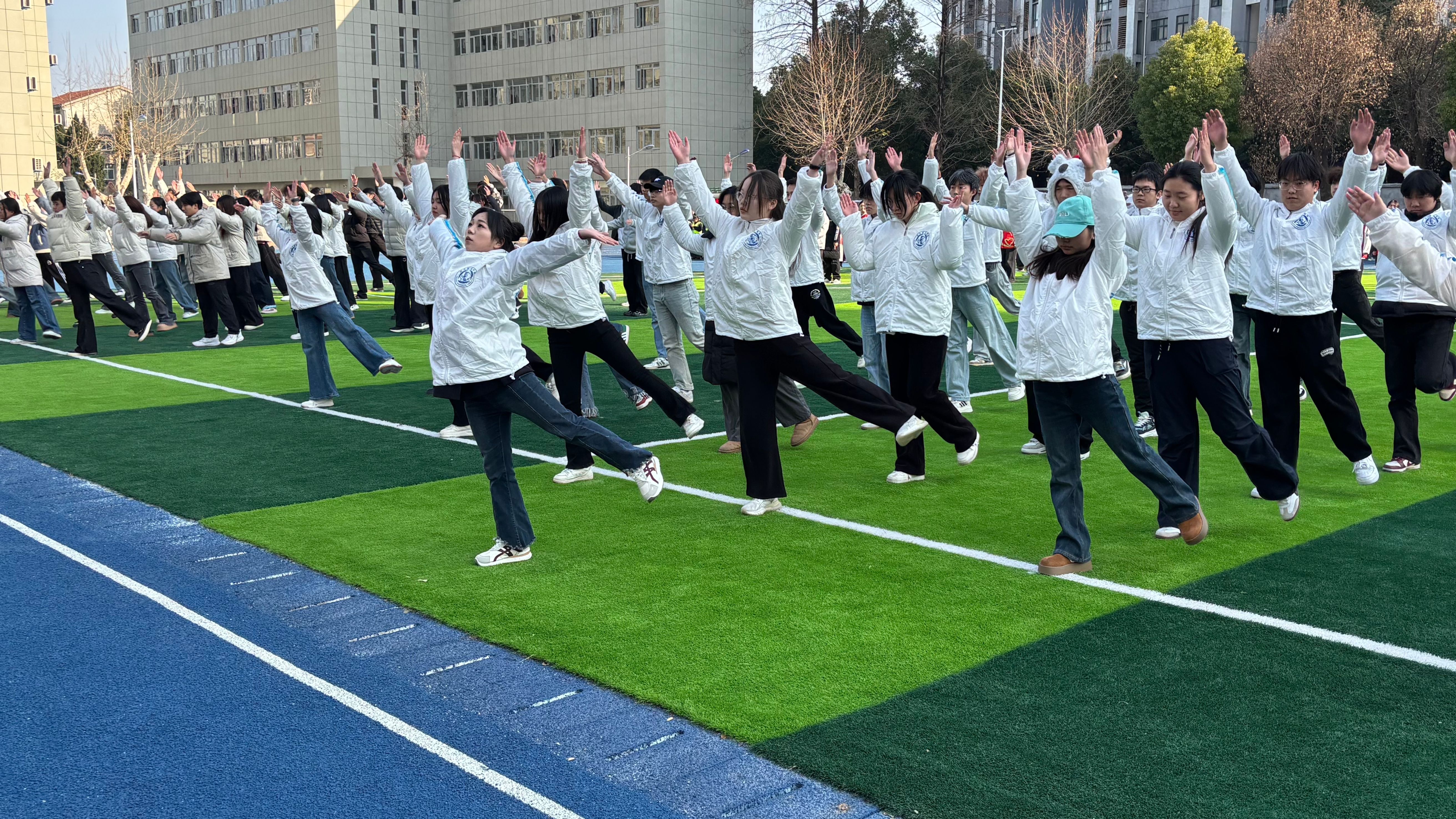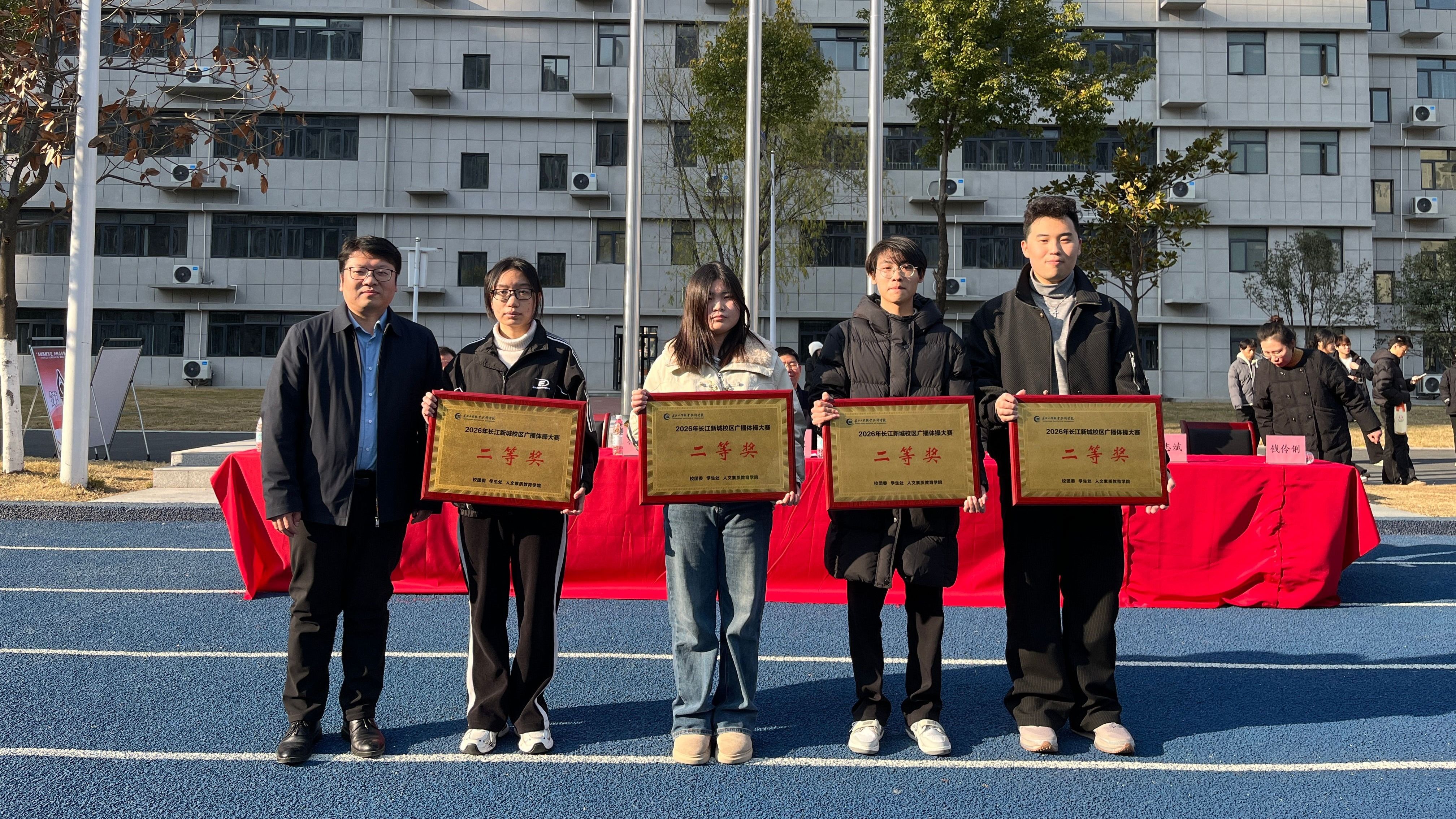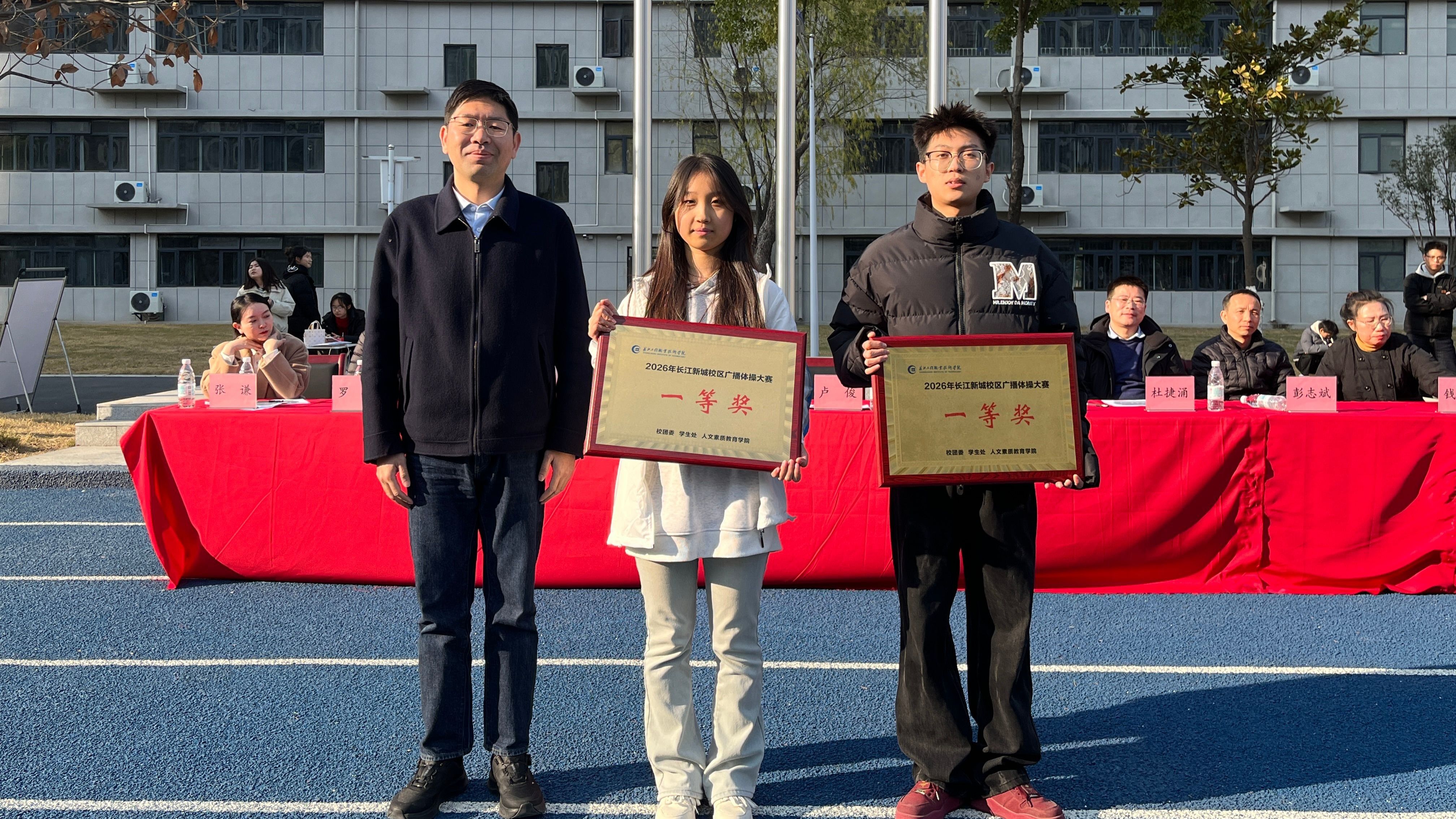 1月7日,由校团委、学生处、人文素质教育学院联合主办,校学生会承办的2026年长江新城校区广播体操大赛在弘新运动场隆重举行。党委委员、副校长、新城校区管委会主任卢俊,党委学生工作部、团委、人文素质教育学院主要负责人,校区管委会成员及教师代表前往现场,水利水电学院、北斗技术学院共计19个班级的学子们同台竞技,以整齐的动作、昂扬的姿态展现青春风采。