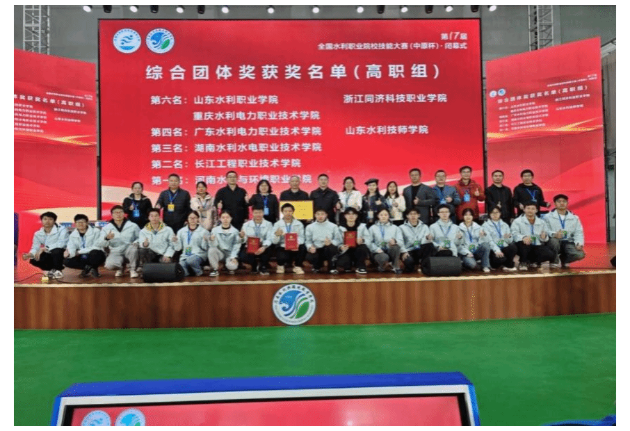 在第十七届全国水利职业院校技能大赛(中原杯)中,由我校水利水电学院、北斗技术学院联合组建的5支代表队(共17名选手),参加了河道修防技术、水利工程BIM建模及应用等全部五个赛项的角逐。面对来自全国34所高职院校的强劲对手,我校选手沉着应战,凭借扎实的专业功底、稳定的心理素质与出色的临场发挥,勇夺大赛高职组“综合团体第二名”。在个人奖项中,我校学子同样表现卓越,共斩获一等奖3项、二等奖7项、三等奖7项,实现了17名参赛选手100%获奖的佳绩,充分展现了学校高质量的人才培养水平和学子全面扎实的专业能力。