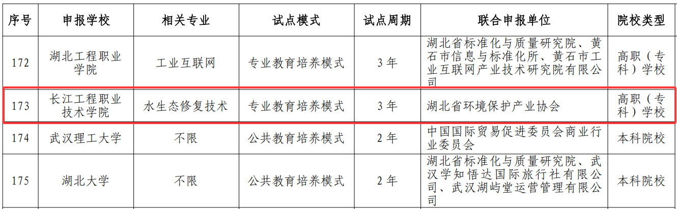 此次试点由国家市场监督管理总局和教育部共同推动,旨在培养既懂专业又掌握标准化知识的复合型人才。学校以水生态修复技术专业为基础,联合湖北省环境保护产业协会共同申报,采用专业教育融合培养模式,建设周期为3年。经过多轮评审,最终我校凭借在标准化教育方面的扎实基础与鲜明特色脱颖而出。