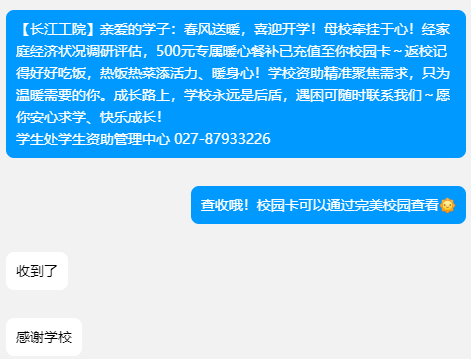 为让资助精准落地、高效暖心,学校学生资助管理中心通过严格审核、细致摸排,结合学生家庭经济状况与实际需求,精准确定79名帮扶对象。此次餐补500元直接充值至学生校园卡,流程简便快捷,切实缓解了学生开学期间在餐饮及日常消费上的压力,让资助举措既显实效,更有温度。