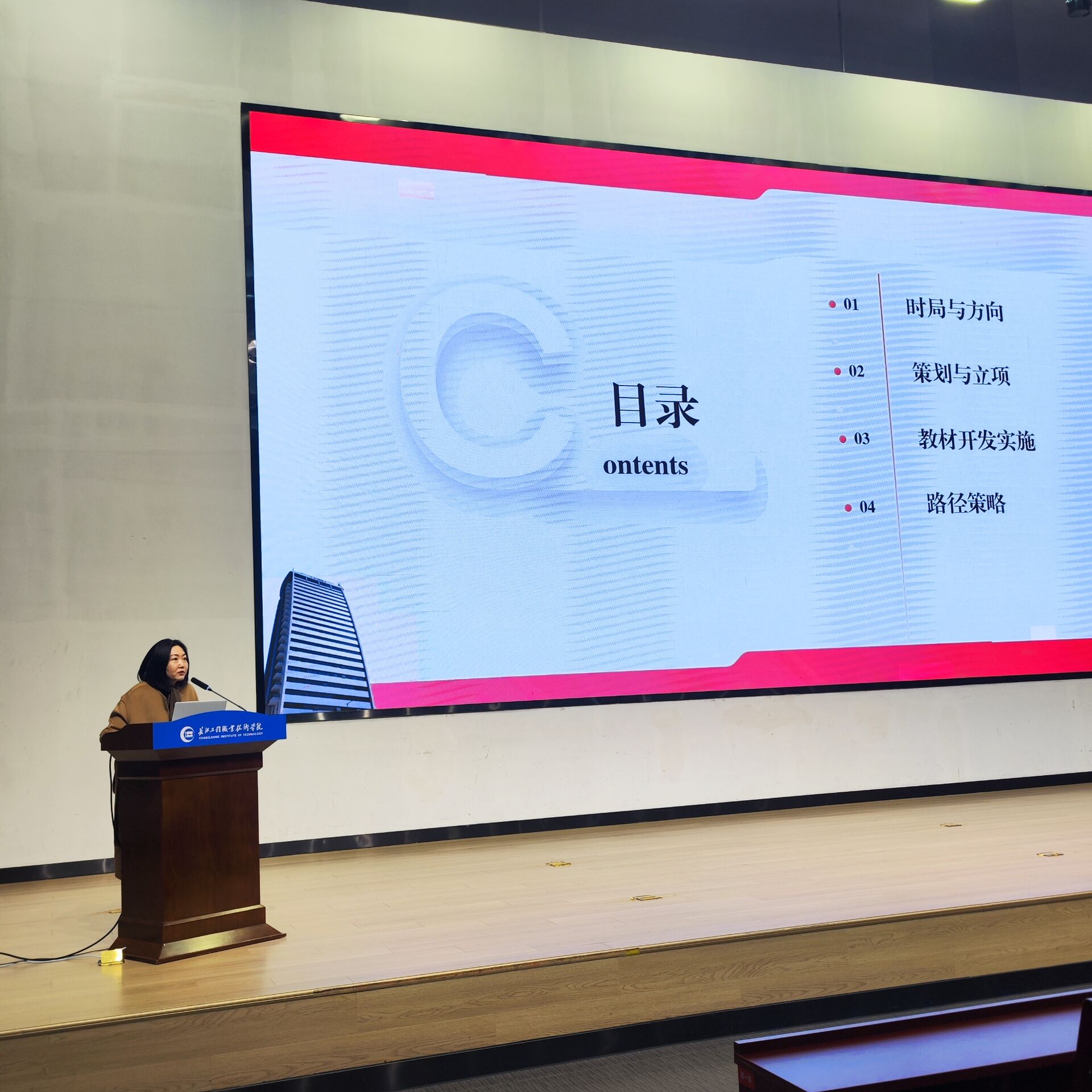 讲座环节,两位主讲人结合各自斩获国家在线精品课程、主编“十四五”规划教材的实践经验,分享了宝贵心得。水利水电学院段凯敏以《精品课程建设的探索与实践》为题,从国家标准与政策依据、核心路径与关键步骤、教学实践案例与模式、行动方案与反思展望四个维度,系统解读了国家在线精品课程的建设思路与实施方法,为教师“科学设计课程组合”提供了具体实操指引。数字商贸学院熊俐作《聚焦 “新要素” 打造 “金教材”》专题分享,紧扣职业教育发展新形势与教学关键要素改革要求,从时局方向、策划立项、开发实施、路径策略等方面,深入阐释了新时代教材建设的核心要义,助力教师提升职业教育教材开发能力,持续 “优化教材呈现形式”。