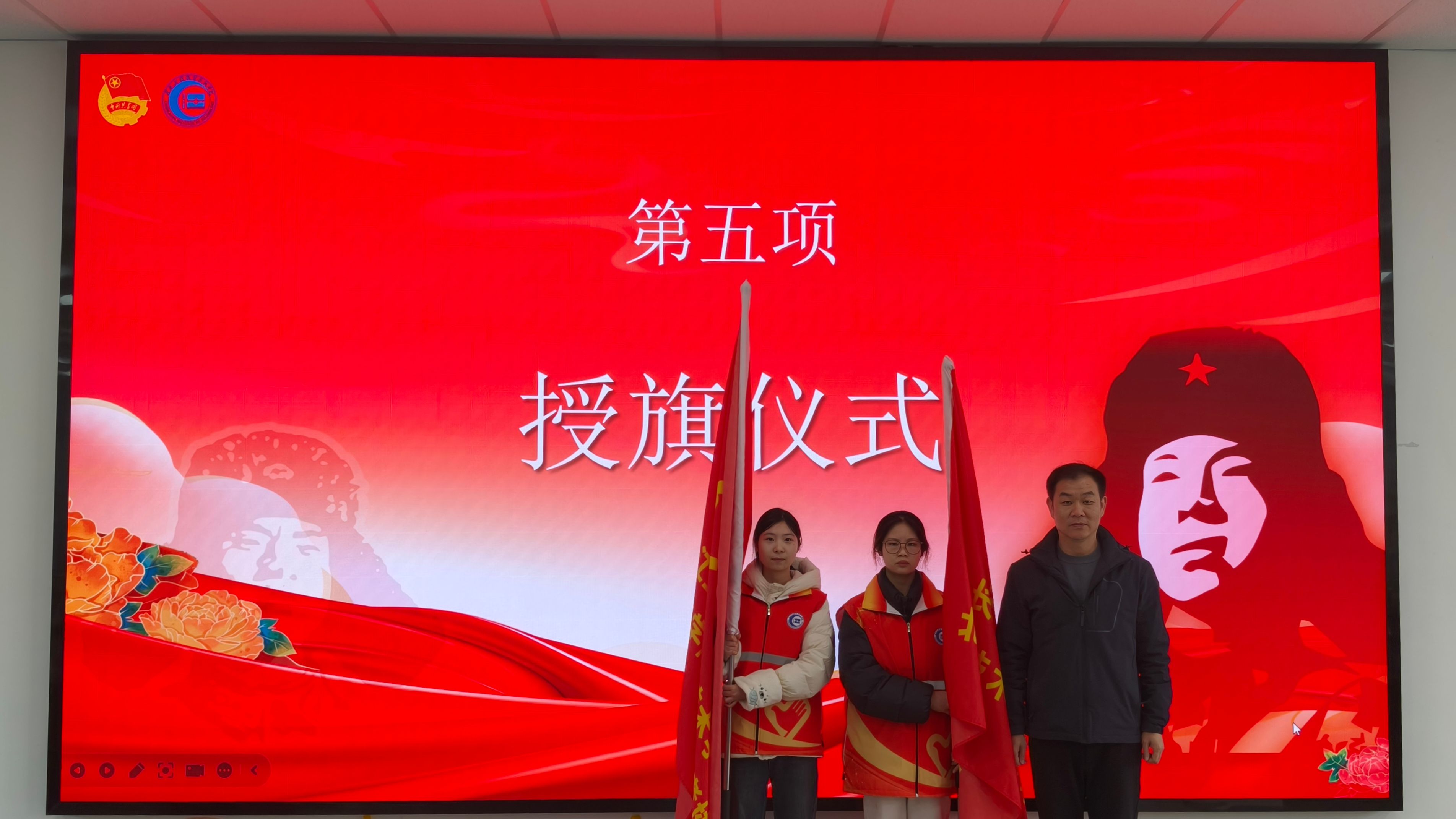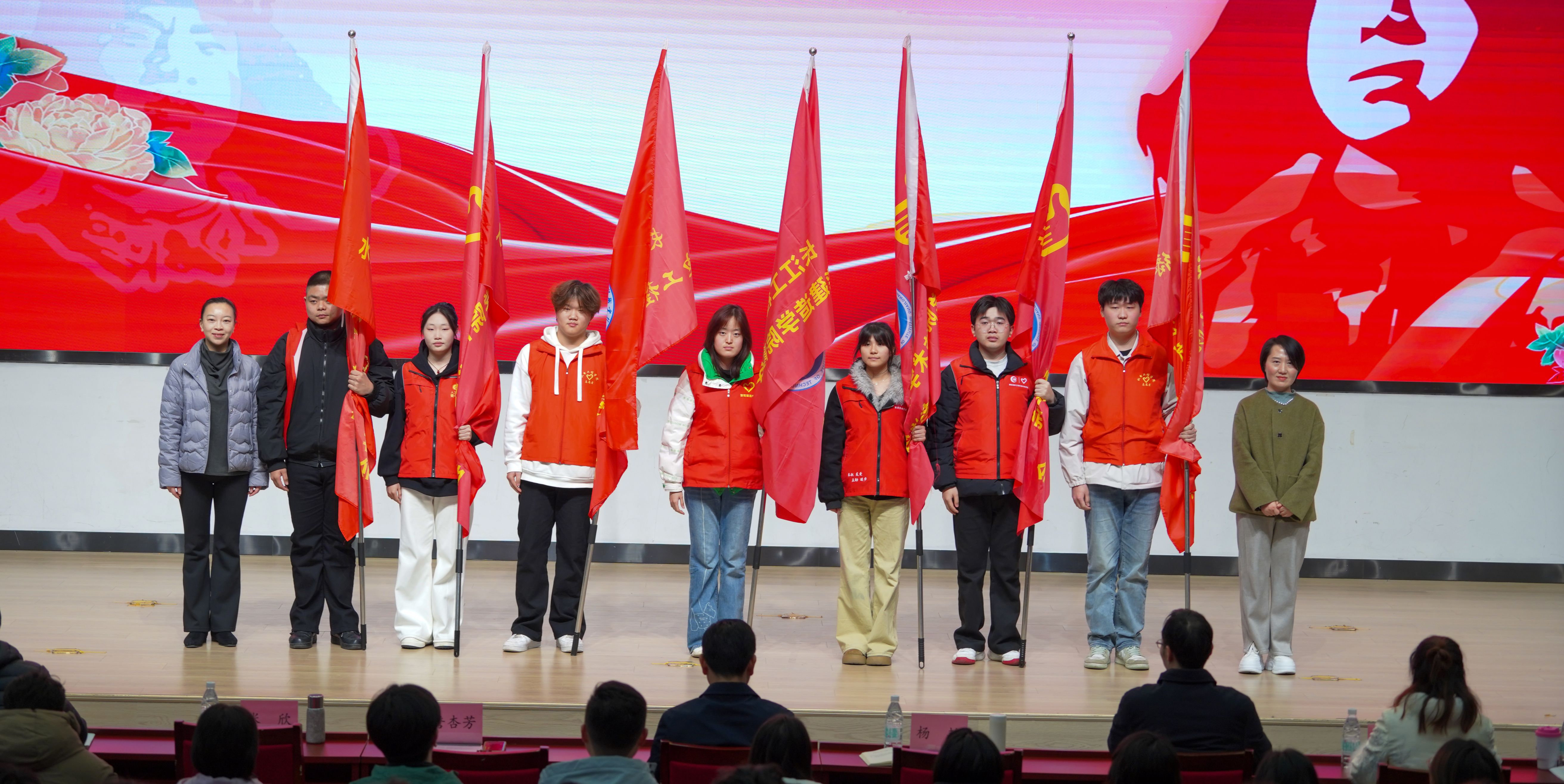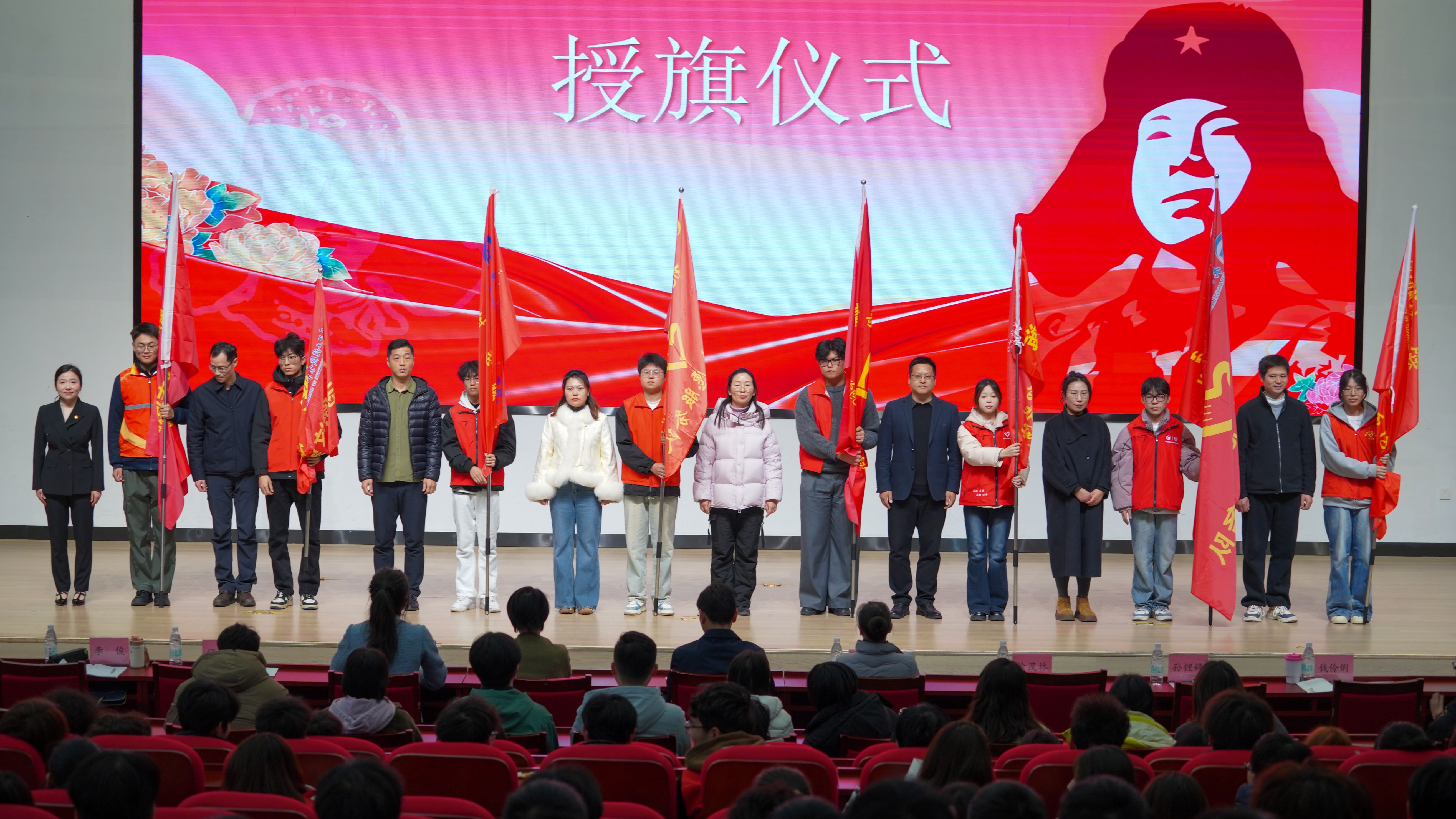 授旗仪式环节,学院党总支书记、副书记为本学院志愿服务队授旗;