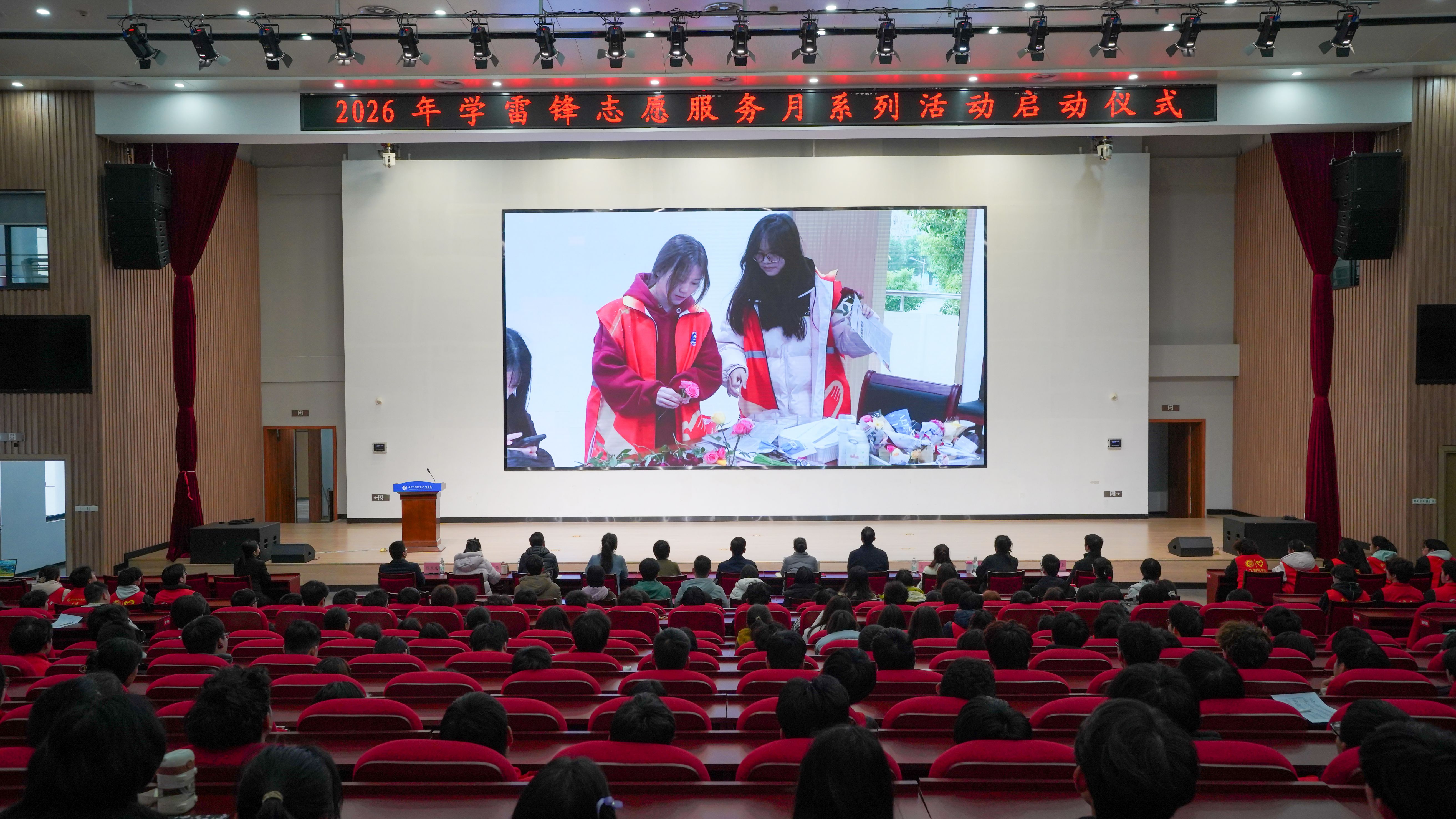 三月春风暖,志愿正当时。3月5日,正值第63个“学雷锋纪念日”暨第27个“中国青年志愿者服务日”,我校2026年“学习雷锋好榜样,传递青春正能量”学雷锋志愿服务月系列活动启动仪式在文化大道校区主会场举行,长江新城校区同步设立分会场,两校区同步启动。副校长卢俊,党委宣传部、党委学生工作部、校团委及长江新城校区相关负责人,各学院党总支书记、副书记,分团委书记、副书记,辅导员及青年志愿者代表共600余人参加活动。启动仪式由校团委委员葛璇主持。