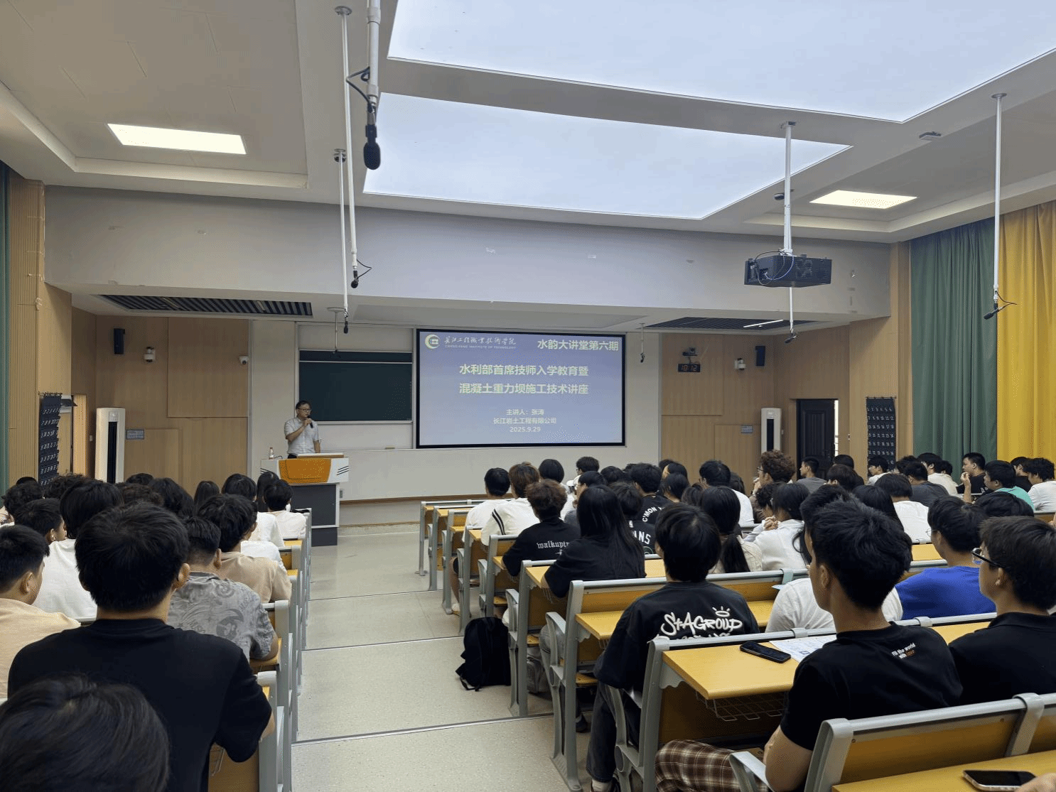 9月29日上午,全国水利技术能手、全国技术能手、全国水利行业首席技师张涛应邀到我校做水韵大讲堂(第六期)学术讲座,他在汉水楼110报告厅为水利水电学院带来了一场主题为“25级新生入学教育暨混凝土重力坝施工技术”的精彩讲座,讲座由陈萌博士主持。