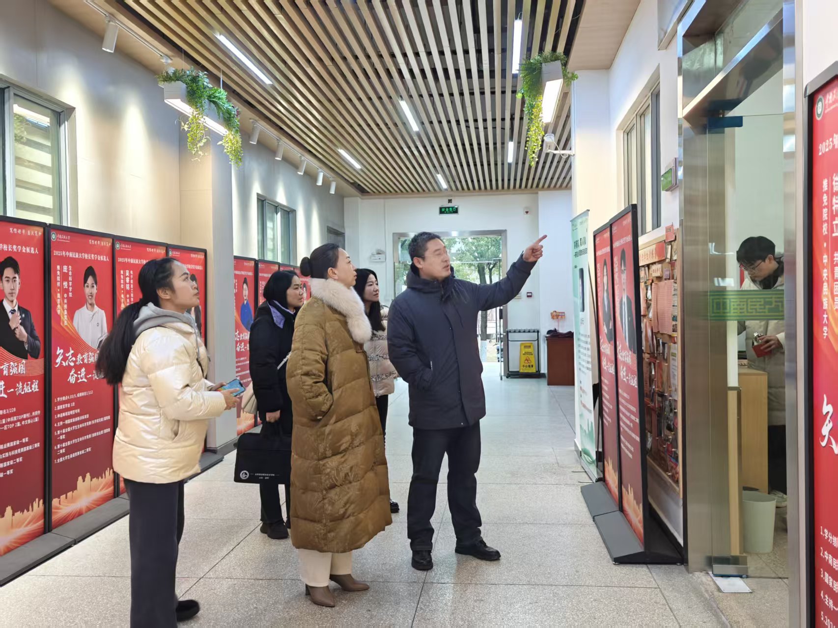 随后,在中南民族大学相关负责人的陪同下,杨艳一行实地参观了网聚思政工作站、筑梦资助工作站、砺武国防工作站、启航学业工作站及“一站式”综合办事大厅,近距离观摩社区阵地功能布局、服务流程优化及育人场景打造,直观感受其“资源整合、精准服务”的建设成效。