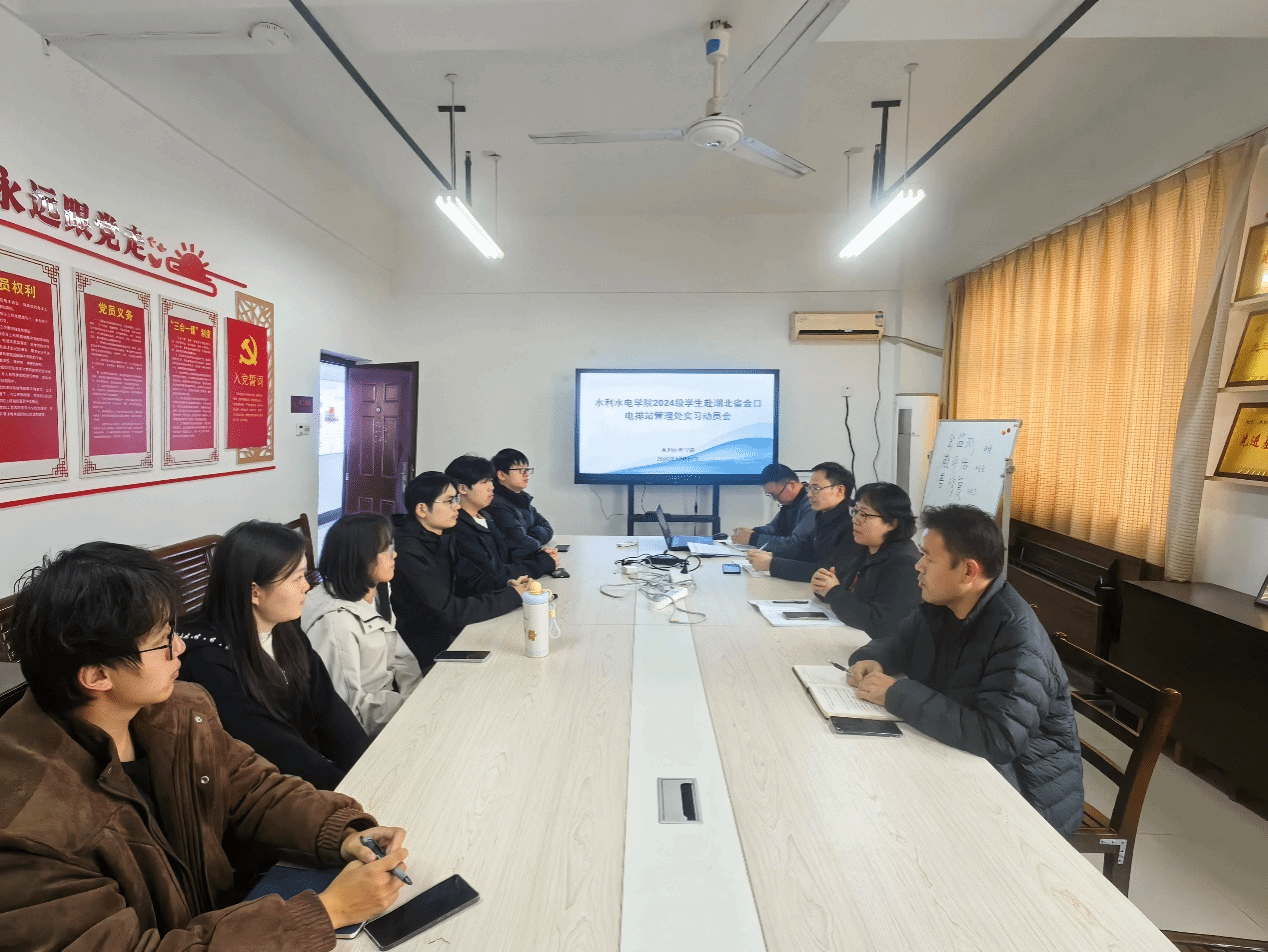 岗位实习前,水利水电学院老师和金口电排站领导分别同全体实习学生召开实习专题动员会。从实习期间日常生活保障、实习专业知识提高、实践操作安全规程、实践操作技能讲解、实习沟通能力提升等多方面为实习学生做好部署工作,同时希望全体学生认真对待来之不易的实习机会,努力践行知行合一,不断提高个人综合能力。