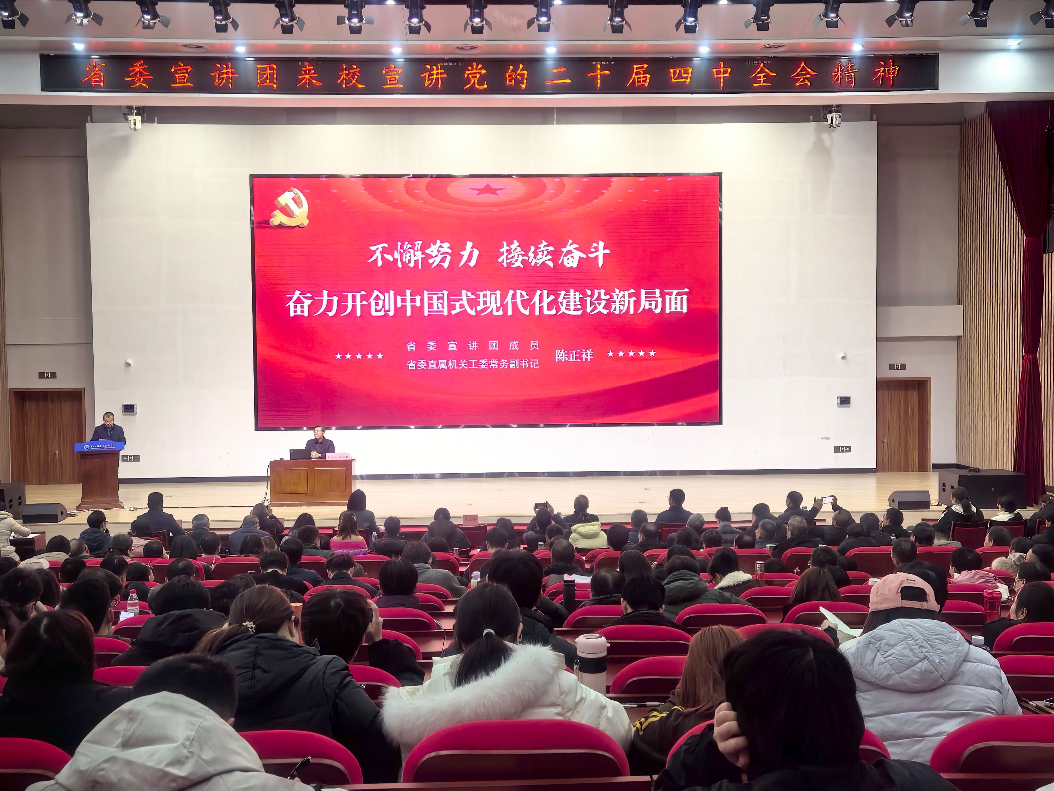 1月8日,学校举行学习贯彻党的二十届四中全会精神宣讲报告会暨党委理论学习中心组(扩大)学习会,省委宣讲团成员、省委直属机关工委常务副书记陈正祥应邀作专题宣讲报告。学校党委书记马大奎主持宣讲报告会。陈...