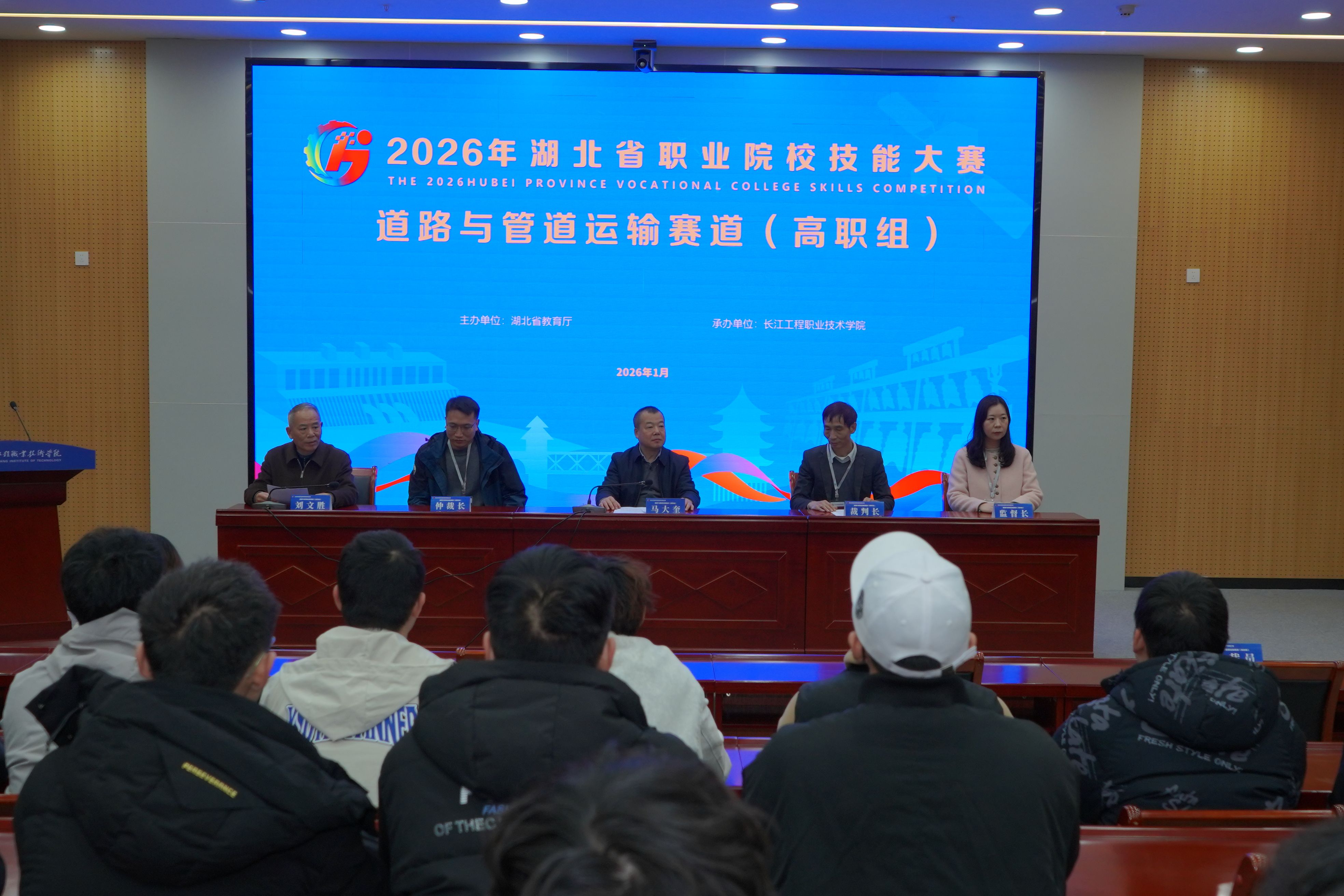1月13日下午,由湖北省教育厅主办、长江工程职业技术学院承办的2026年湖北省职业院校技能大赛道路与管道运输赛道(高职组)开幕式在我校举行,裁判员、仲裁员、监督员及各院校领队、指导教师齐聚一堂,共赴这场以...
